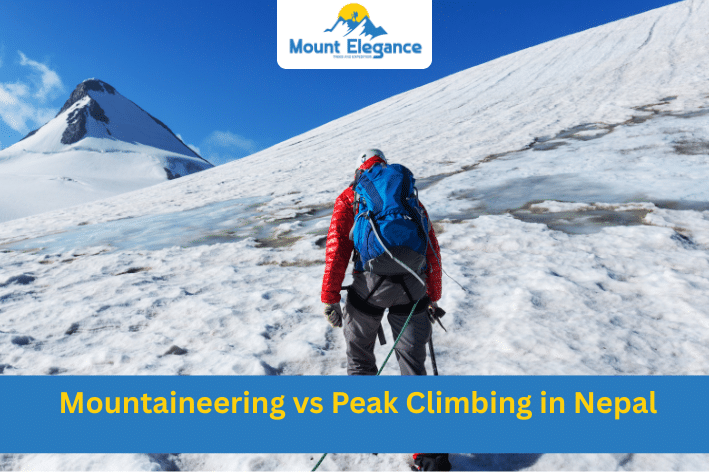 Imagine the crisp Himalayan air filling your lungs. You stand on a peak, gazing at endless snow-capped giants. This dream draws adventurers to Nepal yearly. However, choosing between mountaineering in Nepal and peak climbing in Nepal can puzzle many. At Mount Elegance Treks, we guide you through these thrilling paths. Moreover, we offer tailored experiences for every skill level. Let’s explore the differences. This will help you pick your perfect adventure.